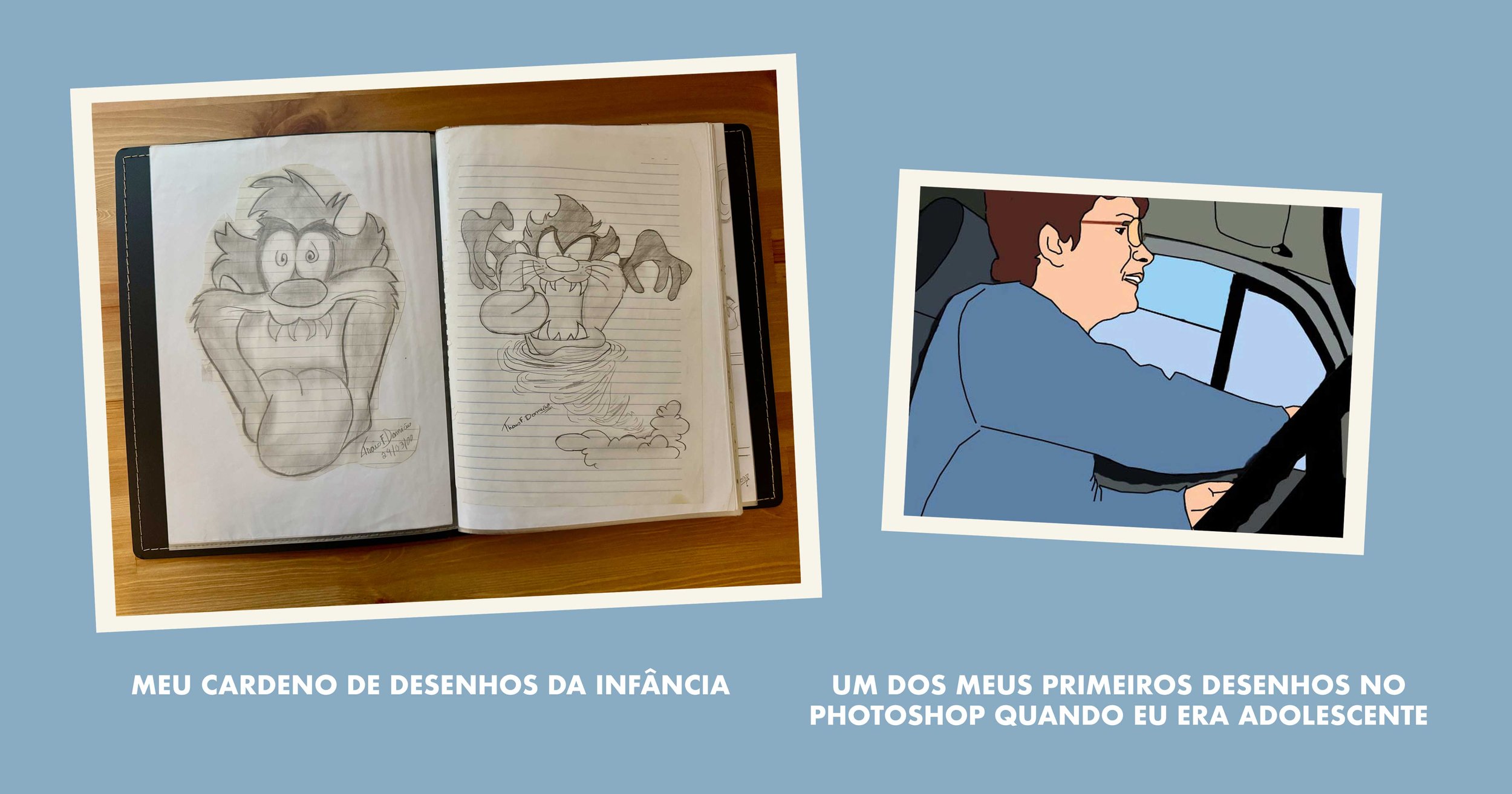 Desenhar sempre foi meu maior hobby. Talvez o isolamento em que eu vivia na escola fosse um solo fértil para a criatividade.